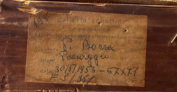 Galleria Schettini, Milano (etichetta al retro); Galleria Milano, Milano (etichetta al retro); collezione privata, Milano