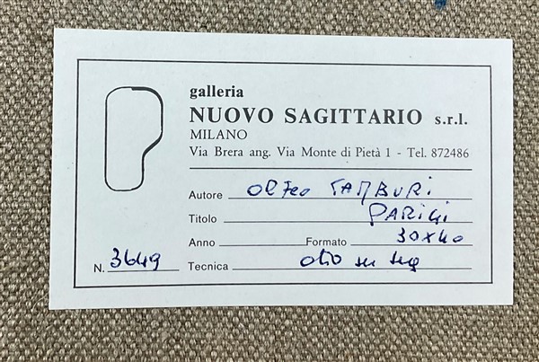 Orfeo Tamburi "Parigi" 1985 Olio su tela applicata su tela cm 30x40 firmato in b