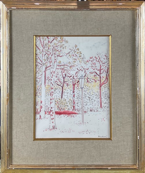 Orfeo Tamburi "Nevicata" acquerello su carta cm 30x23 firmato in basso a destra