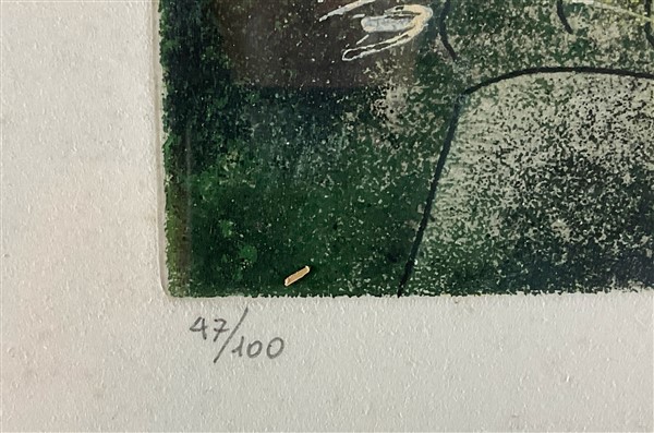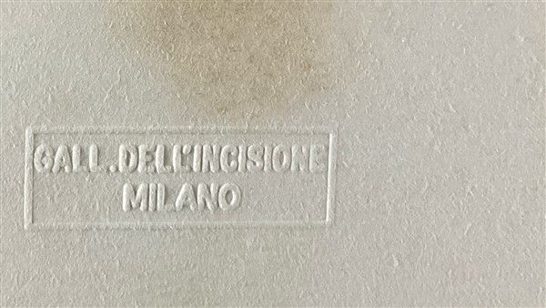 firmata e numerata 97/100 in basso a matita, timbro a secco Galleria dell'Incisione, Milano in basso a sinistra e timbro a secco Georges Visat in basso a destra. In cornice (difetti)