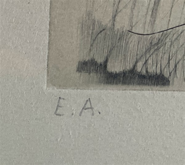 firmata e iscritta E.A. in basso a matita. In cornice (difetti)