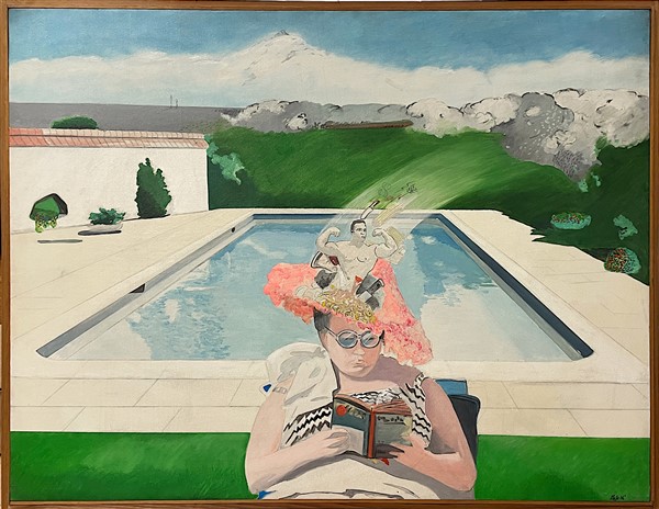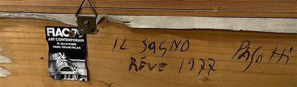 Silvio Pasotti "Il sogno - Réve" 1977 tecnica mista su tela cm 71x95 firmato in