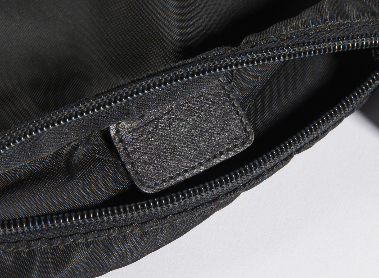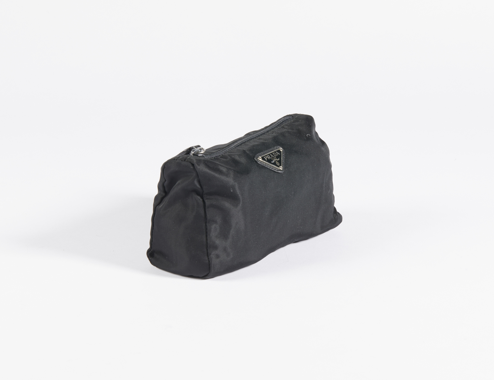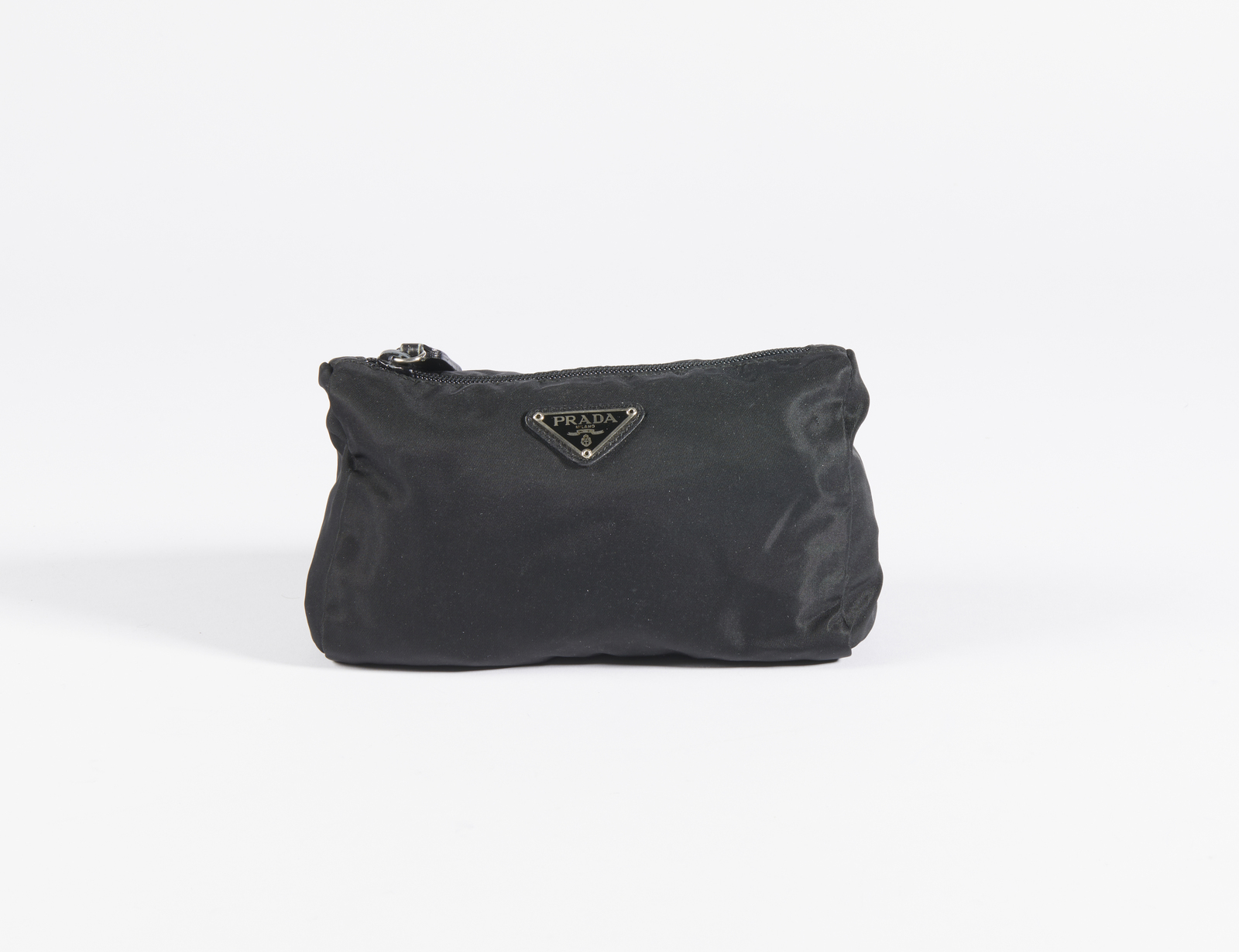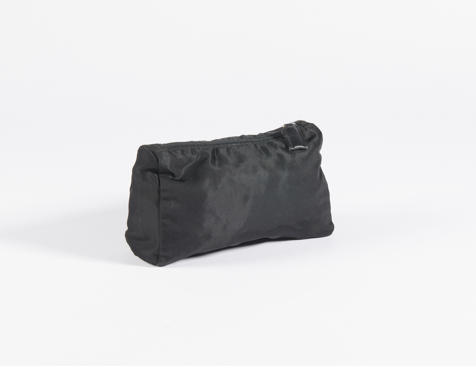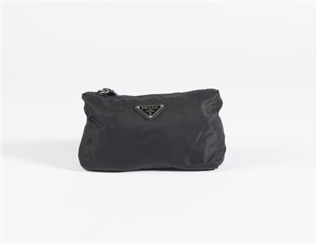 PRADA MILANO Pochette nera in tessuto. Tessuto. Cm 20,00 x 11,00 x 7,50. Pochette in tessuto tecnico nero. Chiusura a zip. Hardware color nero. Logo Prada sul fronte e internamente.
