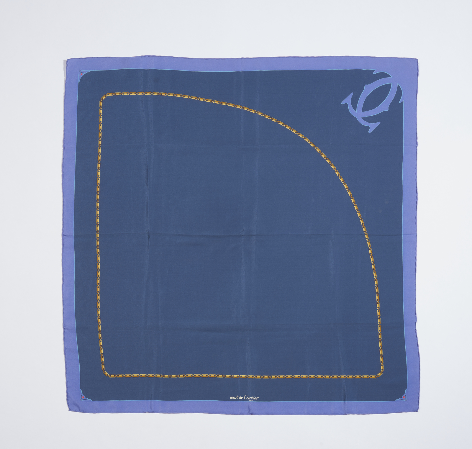 CARTIER - Foulard in seta su fondo blu con motivi a catena.