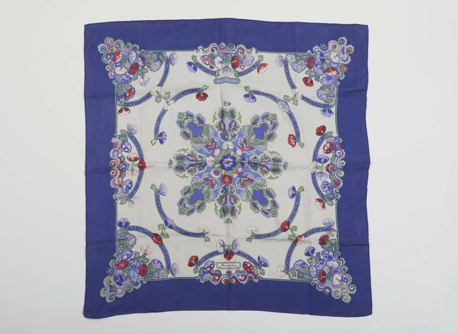 HERMES - Foulard ''Anémones'' con bordi blu.