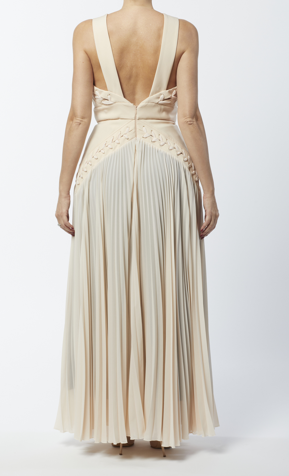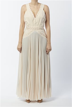 FRANCHI ELISABETTA Abito rosa da sera. . . Elegante abito da sera Elisabetta Franchi senza maniche, scollo a V, motivi intrecciati sulle spalline ed alla vita, gonna in tessuto plissettato. Taglia 44.