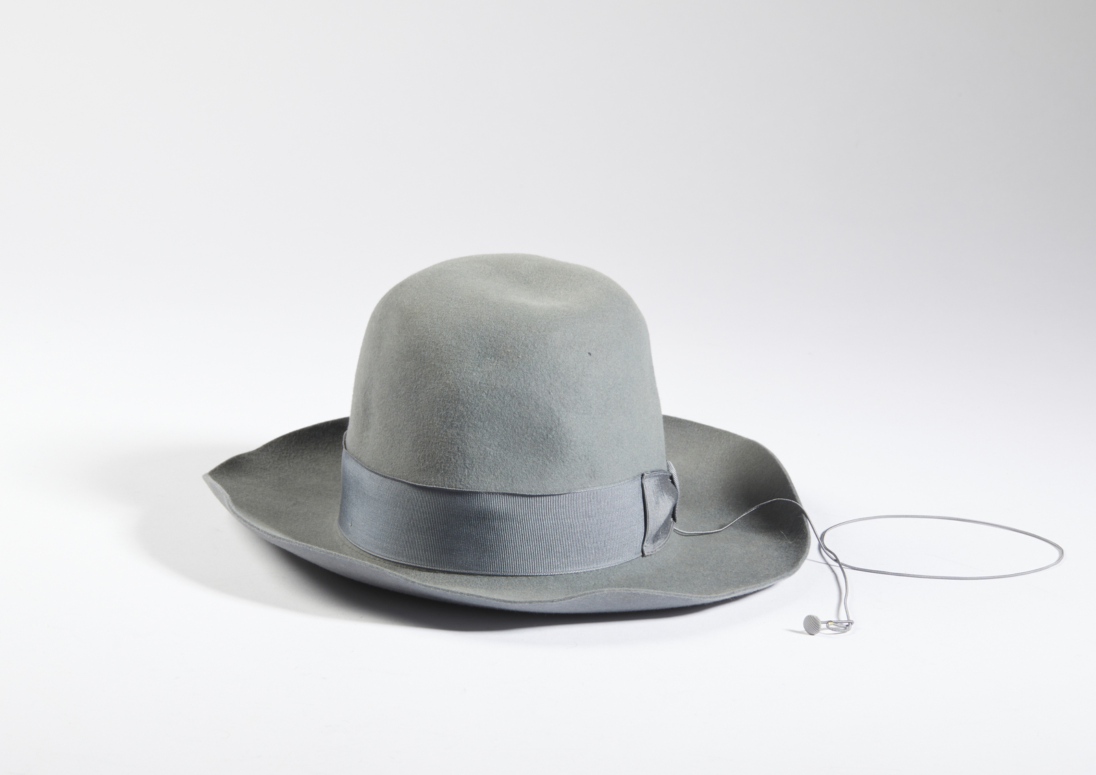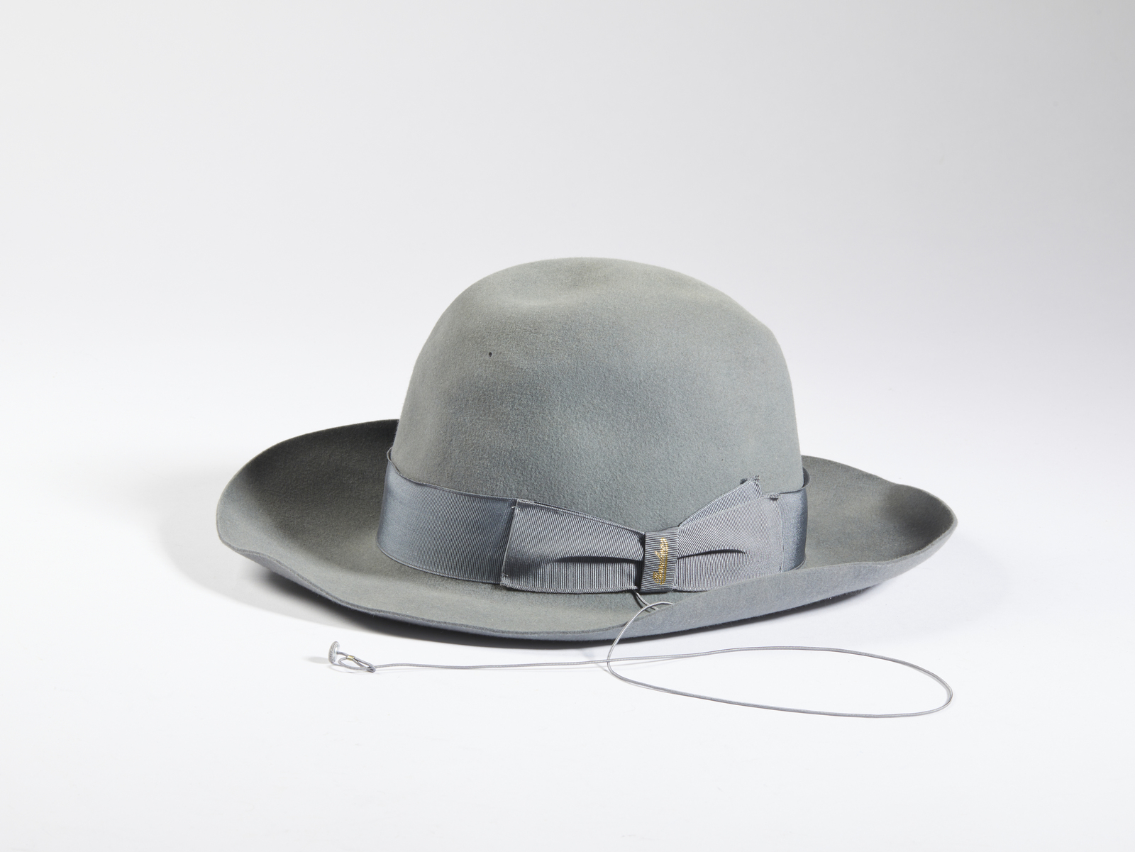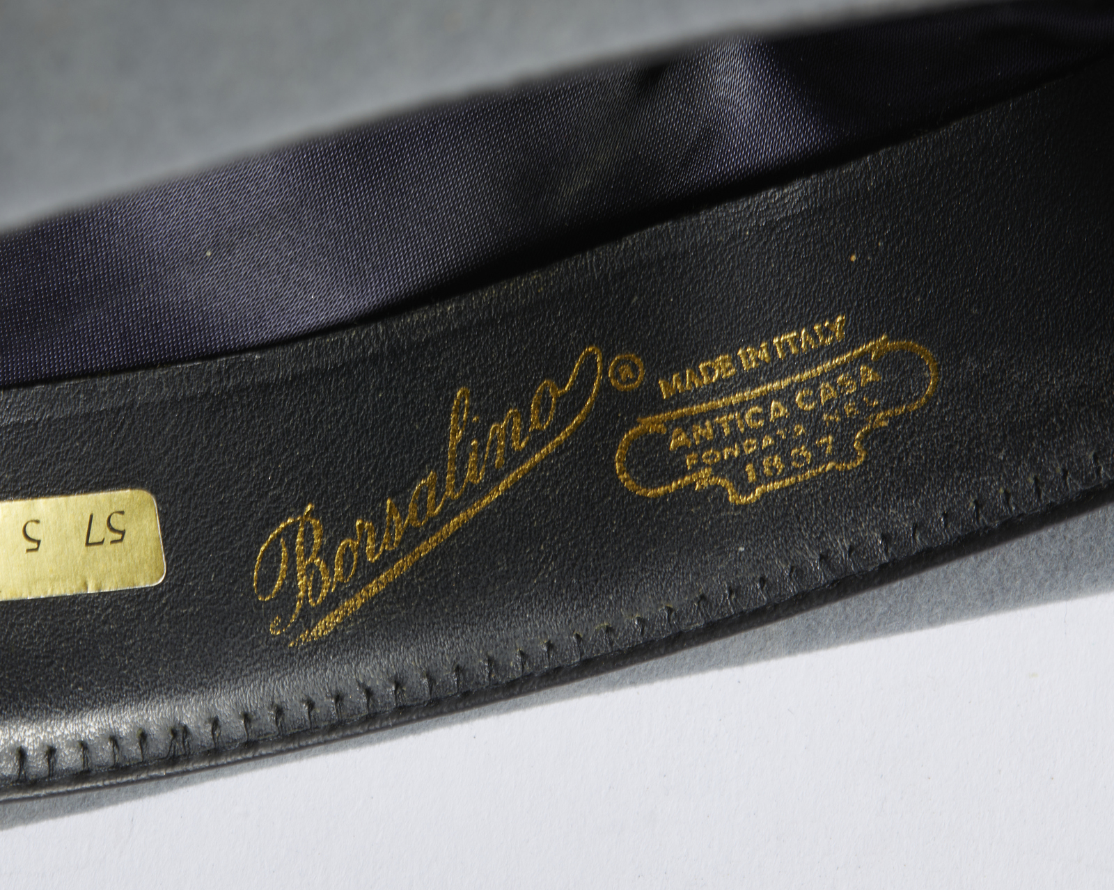 BORSALINO Cappello Borsalino grigio. Lana.. . Cappello Borsalino modello Amedeo, in lana, foderato, di colore grigio polvere, dalla tesa larga 7.5, nastro in gros-grain in tonalità. All'interno, firma e indicazioni di taglia.Taglia 57. 5, UK 7, USA 7.5.