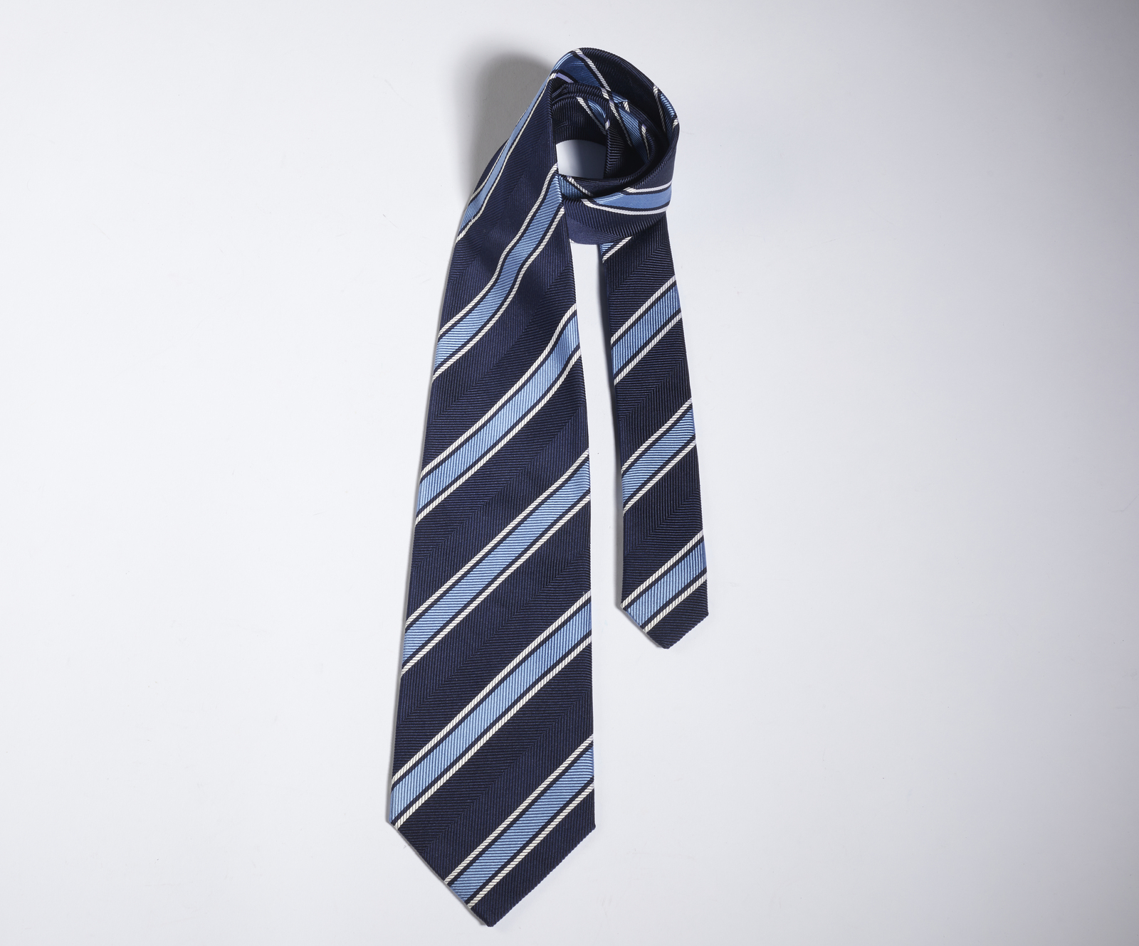 EDDY MONETTI Cravatta nei toni del blu. Seta. . Classica cravatta in seta jacquard Eddy Monetti, con fantasia intessuta di righe trasversali blu scuro, azzurro, bianco.