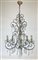 Lampadario a sei luci in metallo ritorto a volute e pendenti in vetro. (h cm 10