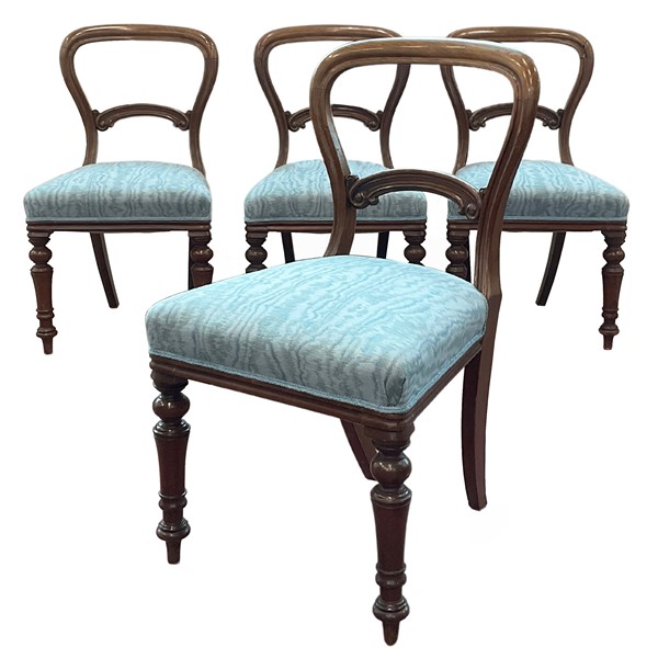 Gruppo di otto sedie in legno con schienali a giorno, gambe anteriori tornite e