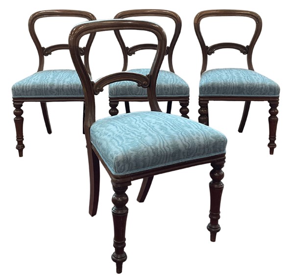 Gruppo di otto sedie in legno con schienali a giorno, gambe anteriori tornite e posteriori a sciabola. Secolo XIX (difetti)