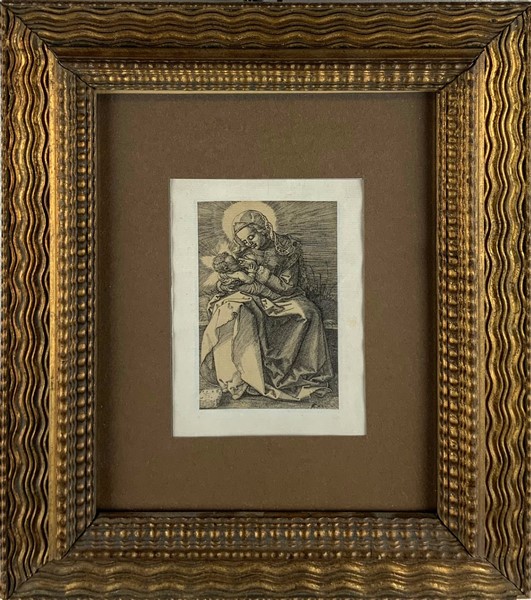 Copia da Albrecht Durer "Vergine con il Bambino" bulino (mm 117x74) in cornice
