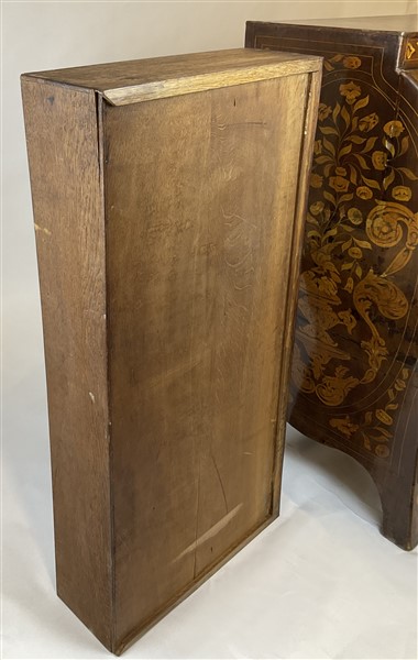 Ribalta bombata in mogano, intarsiata in legni vari a motivi floreali, fronte e