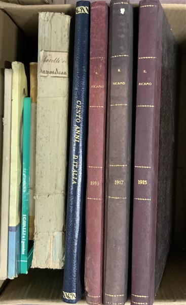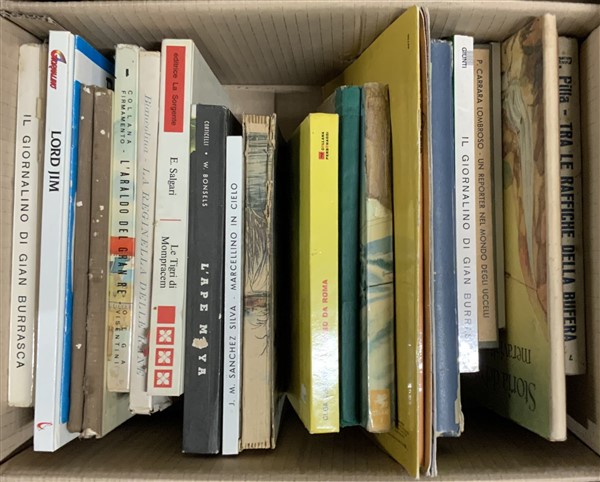 Quattro cartoni di libri per bambini e diversi fascicoli della rivista Touring club.