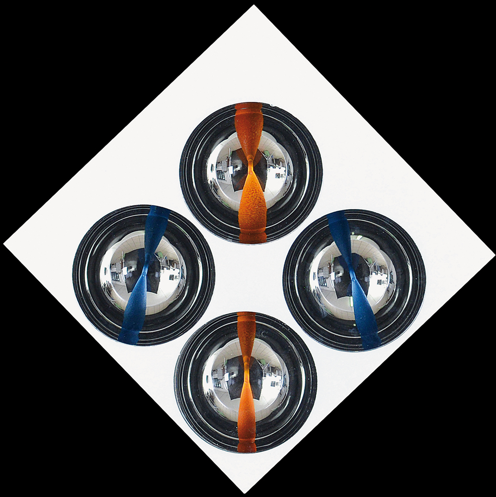 4 semisfere in metacrilato metallizzato e plexiglass in romboidale cm. 44,5x44,5x7,5; (lato cm. 31,5), firma e anno al retro, dichiarazione d'autenticità dell'artista su foto, opera priva di cornice.