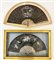 Lotto di due ventagli con stecche in madreperla ambrata intagliata applicata a ramages e pagine in seta nera dipinte a tempera con amorini e scena di genere, di cui uno firmato e datato 1896. Cornici in legno e tessuto (difetti)