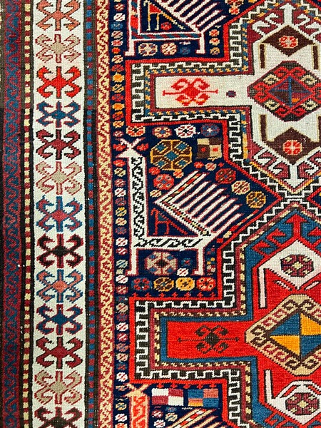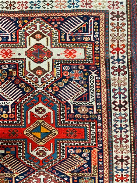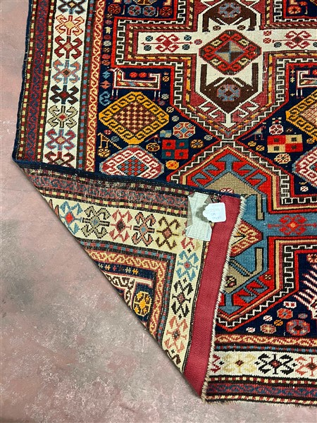 Tappeto Akstafa, Caucaso, fine secolo XIX. Decoro con quattro medaglioni policr