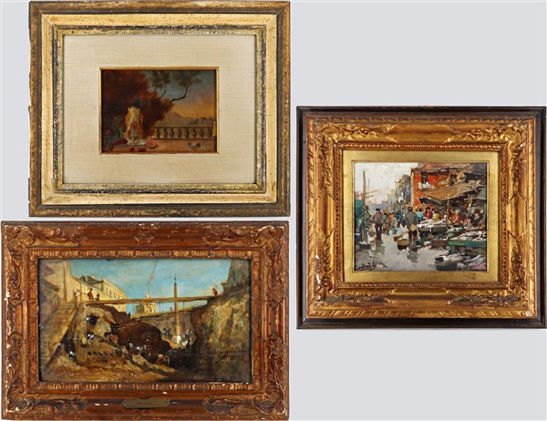 Lotto composto da tre dipinti ad olio su diversi supporti, di diversi autori, misure e soggetti