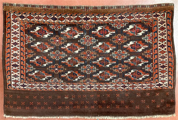 Tappeto Torba Yomut, Turkestan occidentale, fine secolo XIX. Decoro con file di