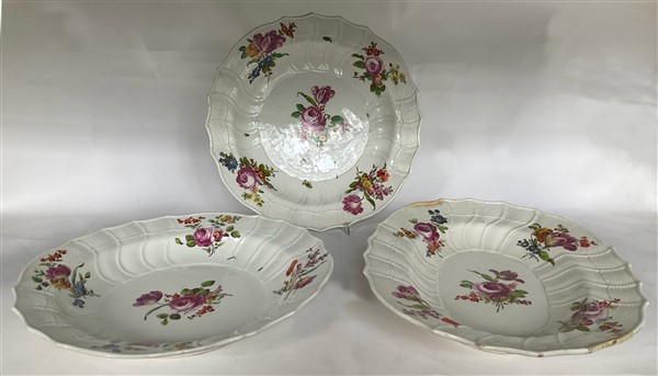 Manifattura di Vienna, secolo XVIII-XIX. Due piatti e un vassoio da portata in