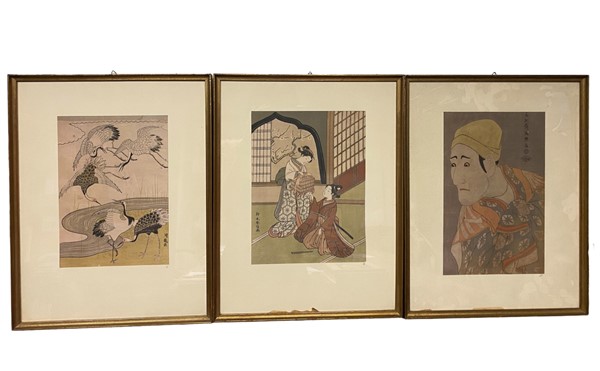 Lotto composto da tre riproduzione xilografiche da opere: Gru al lago,Isoda Kor