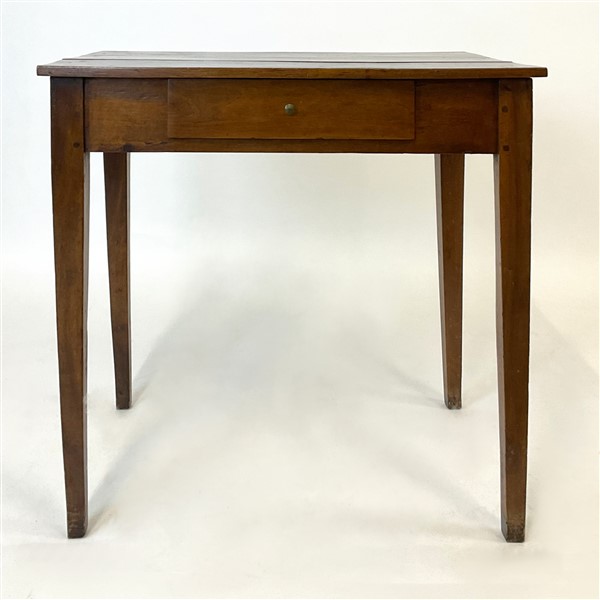 Tavolino in noce con cassetto nella fascia e gambe rastremate (cm 81x75x50) (di