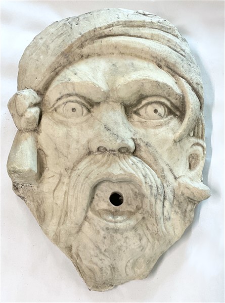 Lot 437 | Antico mascherone da fontana in marmo scolpito (cm 50x35) (difetti)