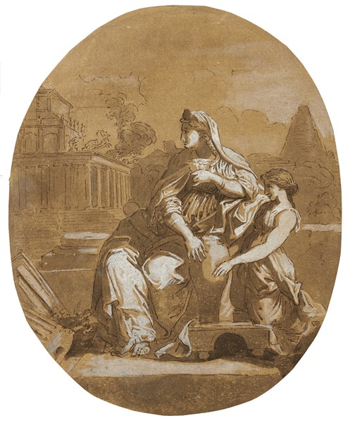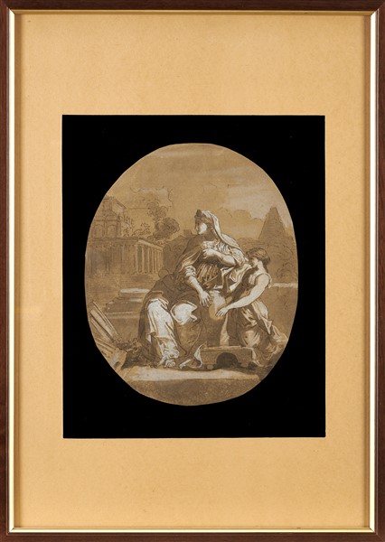 Antonio Zucchi (attr.) "Artemisia" penna e inchiostro bruno con rialzi a biacca