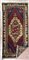 Tappeto Konya, Anatolia, secolo XX. Decoro con medaglione con volatili su fondo rosso, bordura con architetture su fondo cammello (cm 256x103) (difetti)