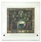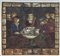 Coppia di antichi pannelli in vetro dipinto e piombato raffiguranti sovrani intenti al gioco con cortigiani (cm 47x51) montatura in vetro con struttura metallica d'epoca successiva (difetti e restauri)