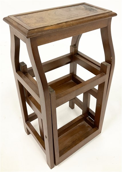Scaletta da biblioteca pieghevole a tre gradini con riserve in cuoio impresso in oro (h cm 68) (difetti)