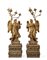 Scultore del secolo XVIII. Coppia di angeli portacero in legno intagliato, dipinto e dorato reggenti candelabro a cinque fiamme. Su basi a plinto con fasce intagliate a volute fiorite (h tot. cm 180) (difetti e restauri)