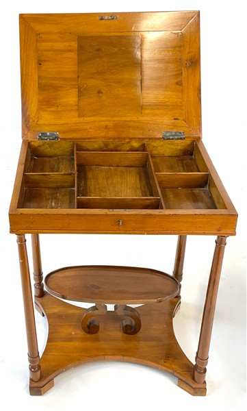 Lotto composto da un tavolino da lavoro in ciliegio con piano incernierato cela