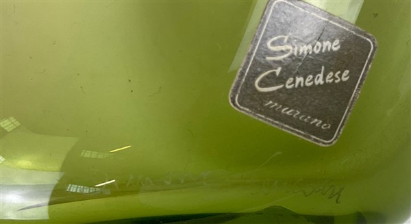 Simone Cenedese Vaso in vetro soffiato trasparente verdino con applicazione pass