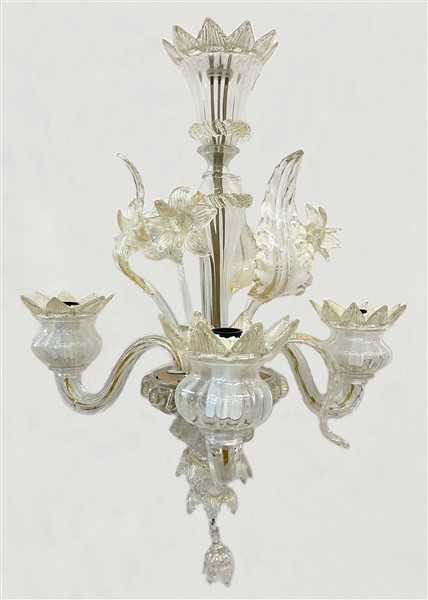 Lot 580 | Manifattura di Murano, secolo XX. Lampadario a tre luci in vetro soffiato incol