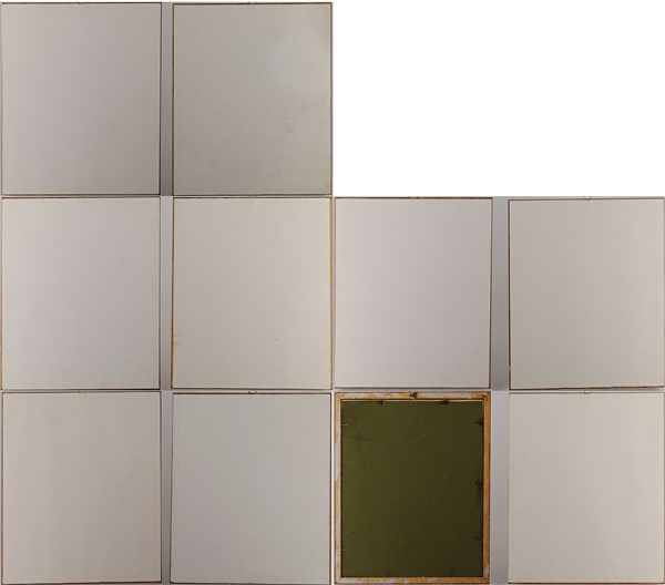 Gruppo di dieci litografie monocrome inglesi raffiguranti paesaggi (cm 22,5x20,5), in cornici (difetti)