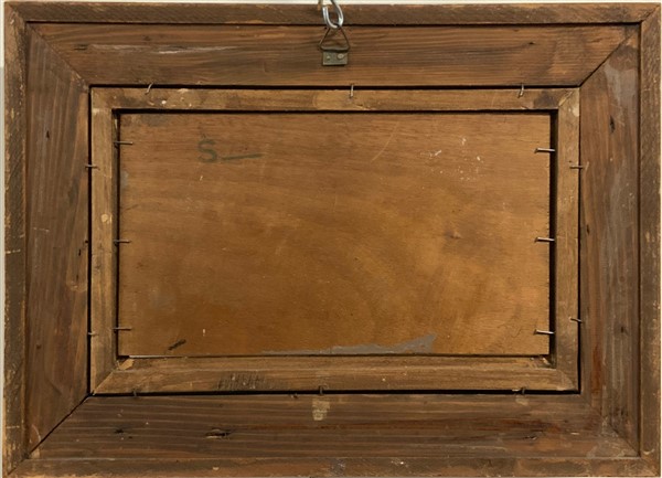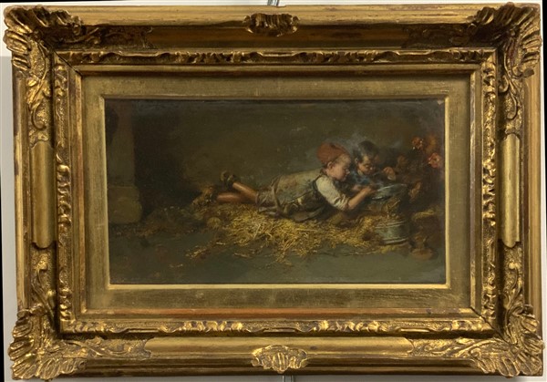 Tito Pellicciotti "La pappa" olio su tavoletta (cm 17,5x31,5) Firmato in basso