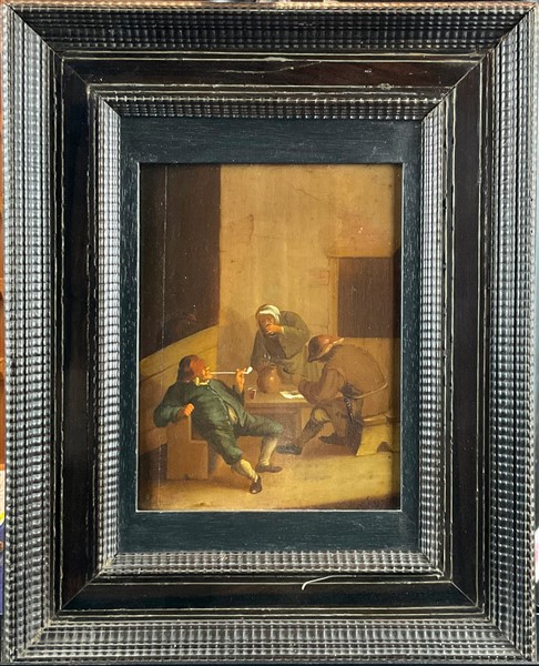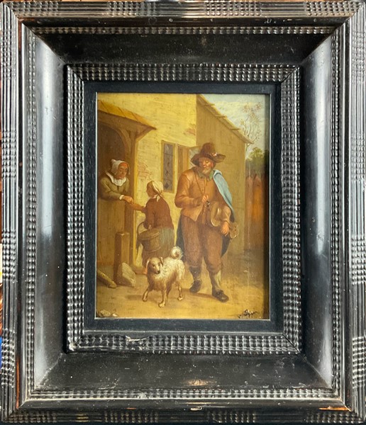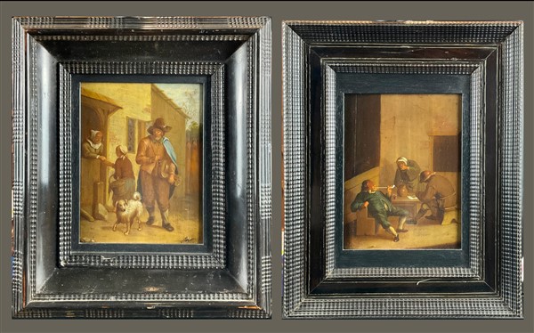Lotto composto da due dipinti ad olio su tavola di scuola olandese del secolo XIX (cm 18x13,5)