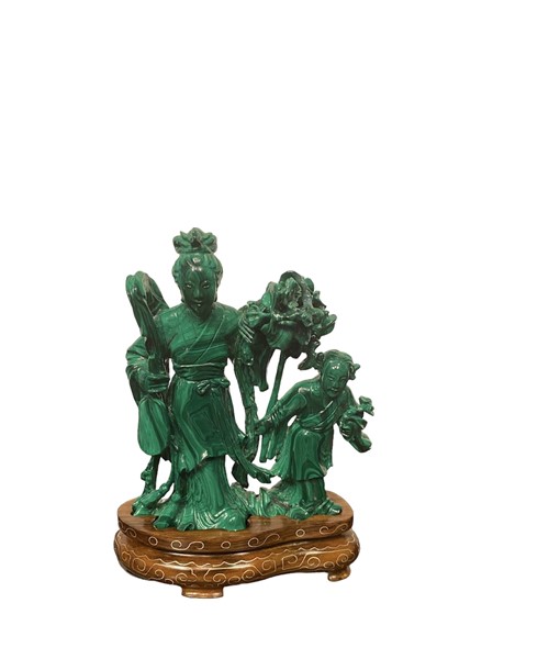 Lot 616 | Scultura in malachite raffigurante figura femminile e un bambino Cina, secolo