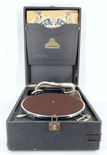 Linguaphone, grammofono portatile. Anni '20 (cm 42x16x30) (difetti)