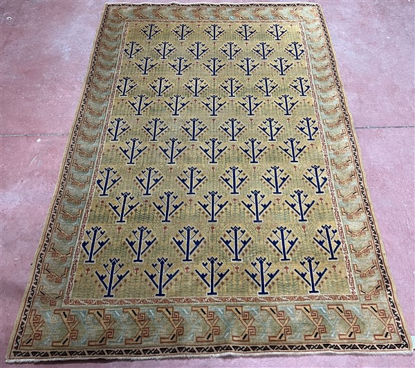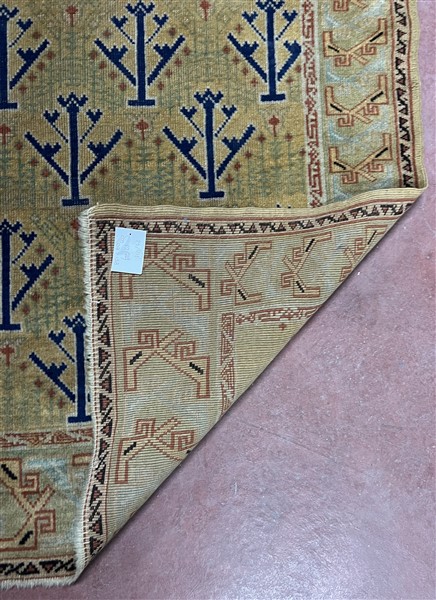 Tappeto anatolico, inizio secolo XX. Decoro all over con albero della vita su fondo verde (cm 207x138) (difetti)