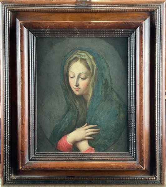 Ignoto Antico dipinto raffigurante "Vergine orante" olio su tavola (cm 26,5x20