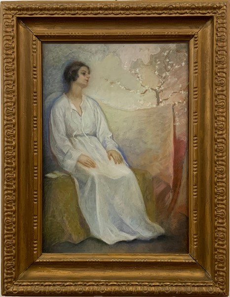 Fioravante Arioli "Ritratto femminile con abito bianco e ciliegio in fiore" pas
