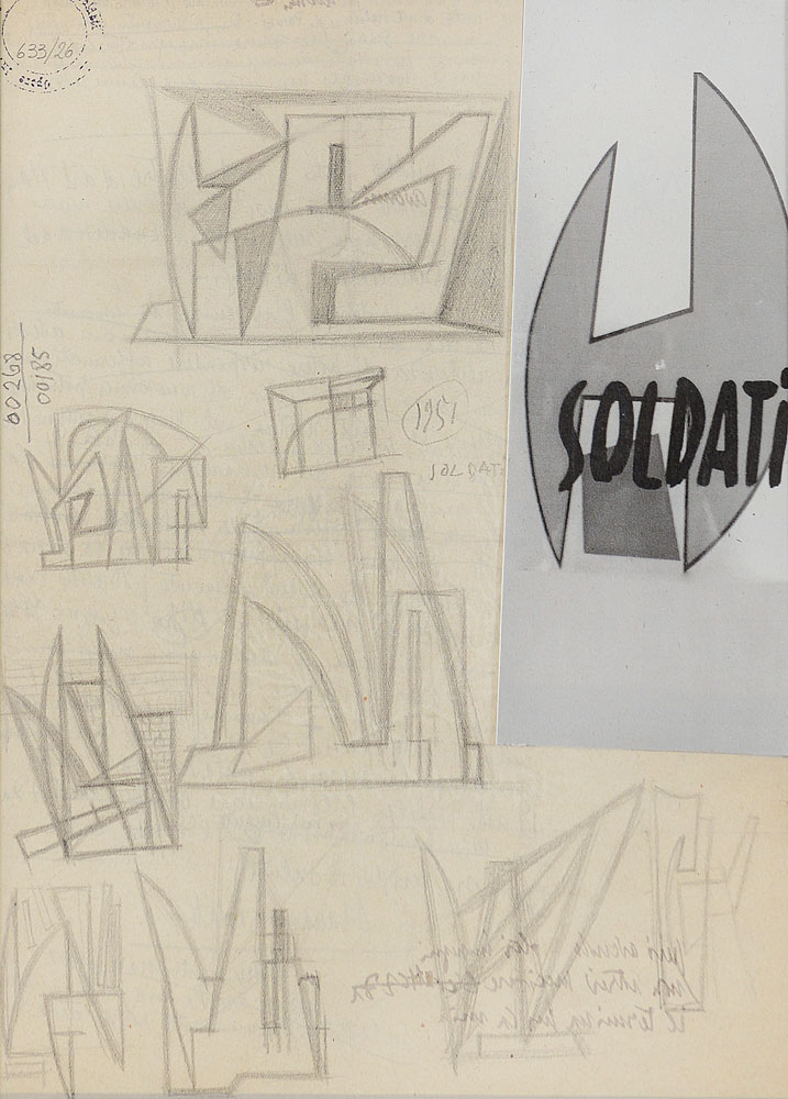 matita su carta cm. 29,7x21, firma al centro, timbro dell'Archivio Garau con numero di repertorio in alto a sinistra, scritte con firma dell'artista al retro, dichiarazione d'autenticità degli Eredi Garau dell'Archivio Storico dell'opera di Atanasio Soldati su foto.