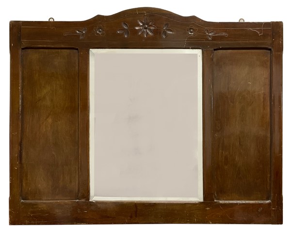 Pannello pensile in legno con parte centrale a specchio intagliato a motivi floreali (cm 84x106) (lievi difetti)