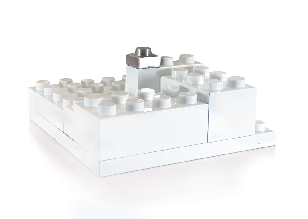 ferro e legno laccato cm.52x52x25, firma e anno al retro, dichiarazione d'autenticità dell'artista con timbro della Fabbrica Eos su foto.