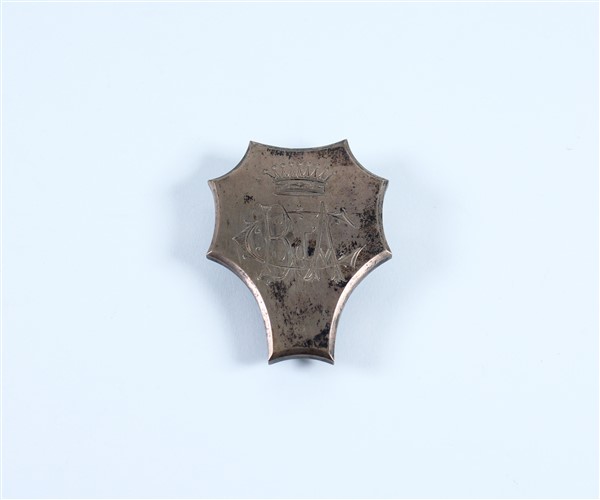 Scudetto nobiliare in metallo argentato con inciso monogramma "CBd'A" e corona