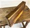 Antico tavolino a due cassetti con gambe tornite riunite da traverse (cm 103x79