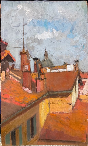 Ignoto toscano del secolo XIX "I tetti di Firenze" 1892 olio su tavoletta appl