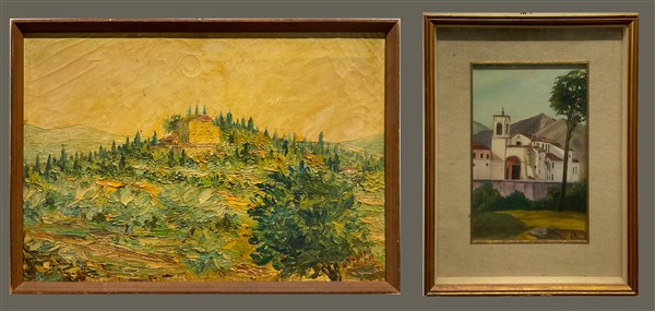 Lotto composto da un olio su tela raffigurante paesaggio (cm 34x49) firmato Paoletti e datato '65 e un olio su tela di Gino Bacci raffigurante chiesa (cm 30x20) firmato in basso a destra